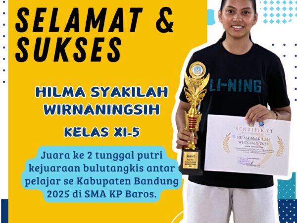 Selamat kepada Hilma Syakilah, Siswi SMA KP Baleendah, atas Prestasinya Kami mengucapkan selamat dan apresiasi yang setinggi-tingginya kepada Hilma Syakilah..