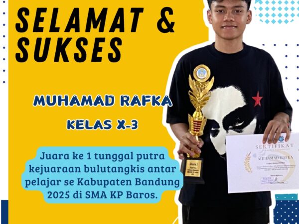 Selamat dan apresiasi yang setinggi-tingginya kami sampaikan kepada Kevin Khasarusman, siswa kelas X-3 SMA KP Baleendah. Dengan dedikasi dan kekuatan..