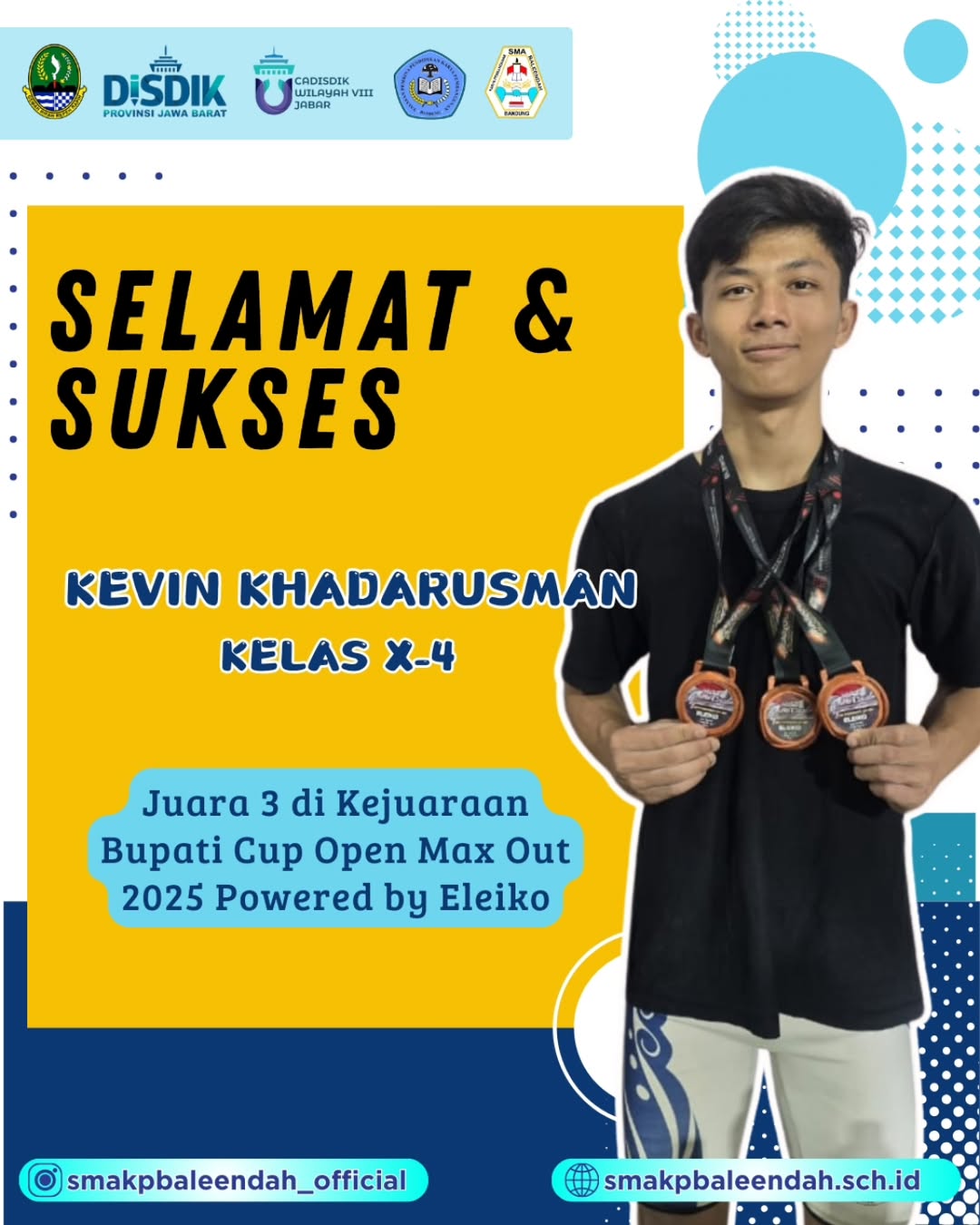 Selamat dan apresiasi yang setinggi-tingginya kami sampaikan kepada Kevin Khasarusman, siswa kelas X-3 SMA KP Baleendah. Dengan dedikasi dan kekuatan luar biasa, Kevin berhasil meraih Juara 3 dalam ajang bergengsi Kejuaraan Angkat Besi Bupati Cup Open Max Out 2025 Powered by Eleiko.