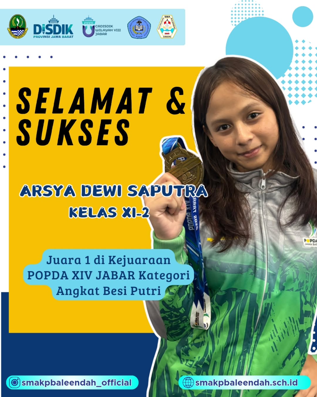 Ini adalah medali emas ketiga yang dipersembahkan oleh pahlawan-pahlawan Angkat Besi putri kita di ajang Pekan Olahraga Pelajar Daerah (POPDA) XIV Jawa Barat. Prestasi Arsya menegaskan dominasi dan kualitas pembinaan olahraga Angkat Besi di sekolah kita.