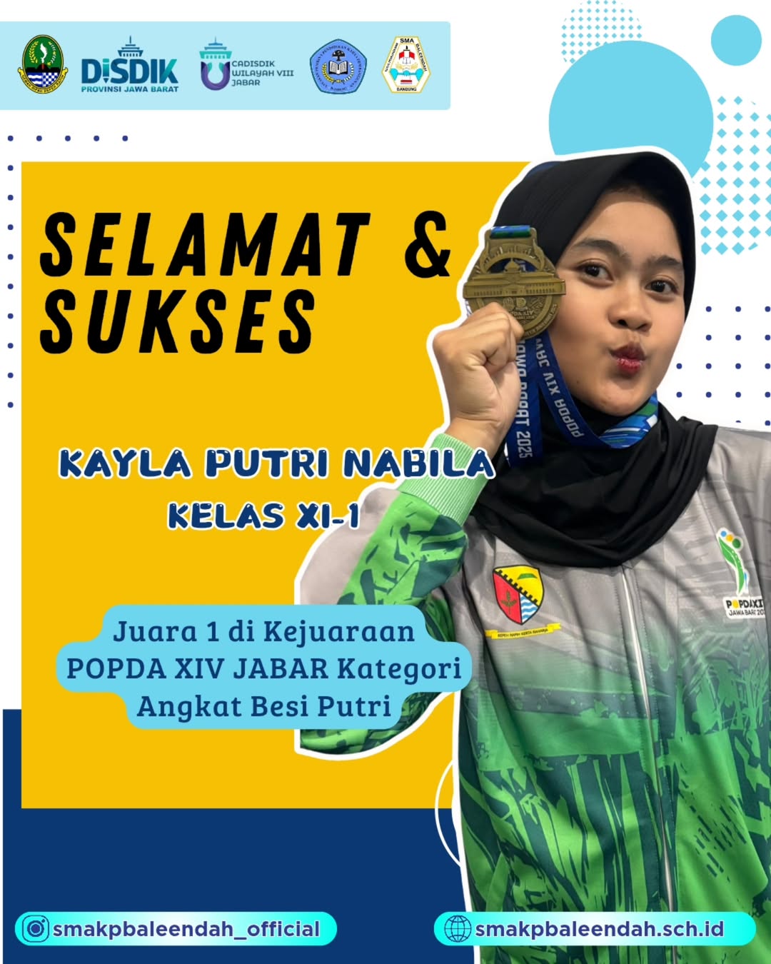 Keberhasilan Kayla bersama Shelvia Nurwida menjadikan SMA KP Baleendah sebagai salah satu kekuatan utama dalam cabang olahraga Angkat Besi di Jawa Barat. Kalian berdua telah menginspirasi kami semua!