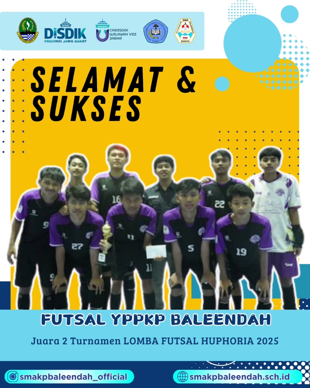 SMA KP Baleendah dengan bangga dan penuh suka cita mengucapkan selamat kepada seluruh anggota tim Ekstrakurikuler Futsal YPPKP Baleendah atas prestasi gemilang yang telah diraih. Tim Futsal kita berhasil menjadi Juara 2 dalam ajang bergengsi Turnamen Lomba Futsal HUPHORIA 2025!