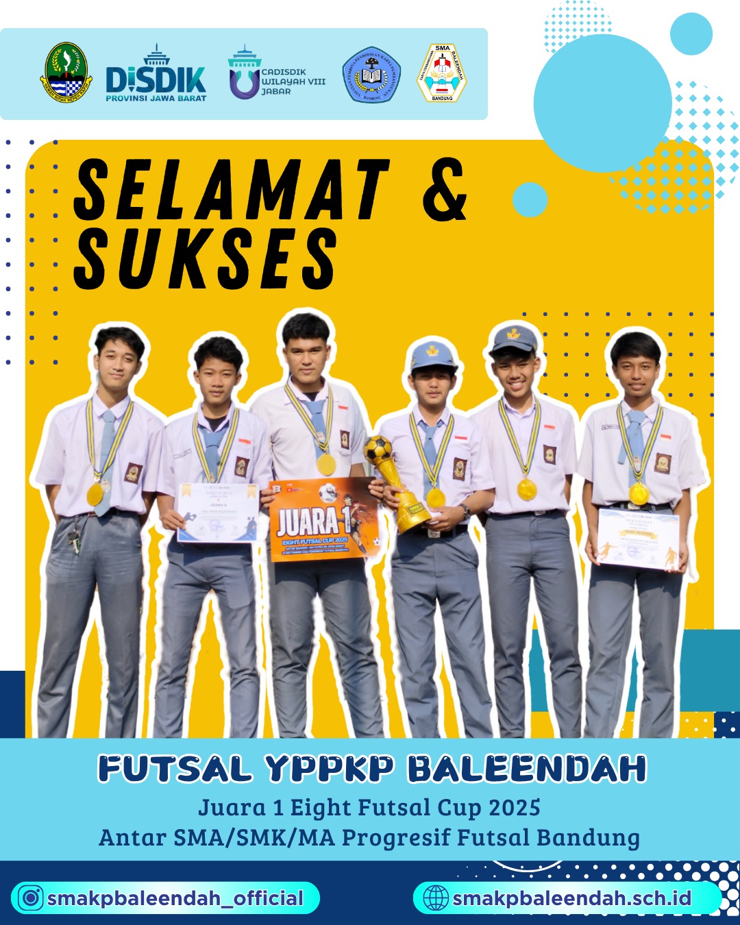 Tim Futsal YPPKP Baleendah berhasil merebut gelar tertinggi sebagai Juara 1 dalam ajang Eight Futsal Cup 2025 yang mempertemukan SMA/SMK/MA Progresif Futsal se-Bandung Raya.